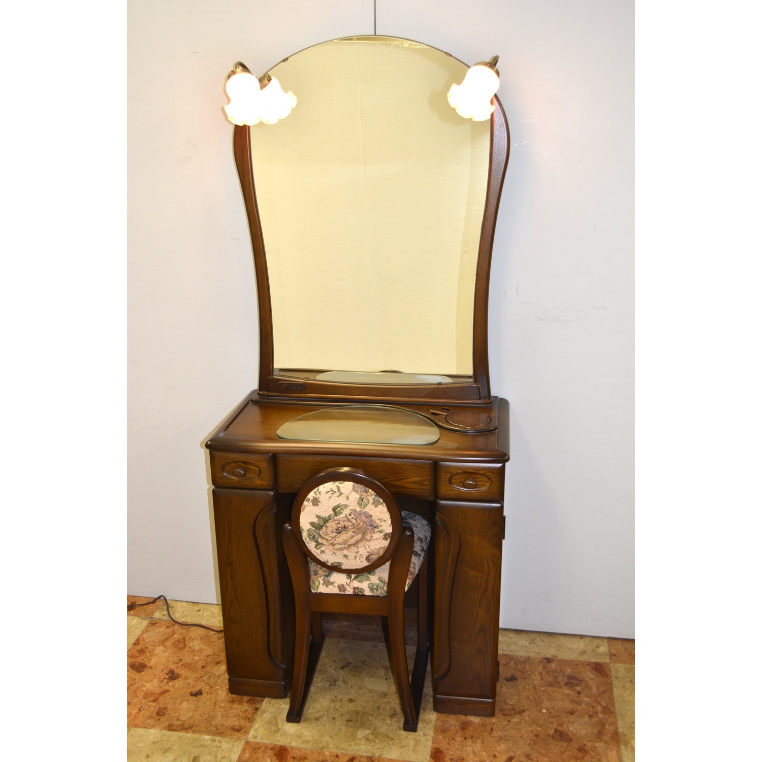 立ち姿も映せるコンパクトでスリムなアンティークドレッサーです。