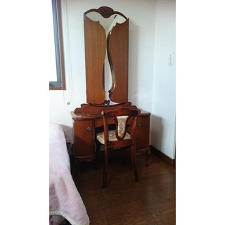 .鏡台のお買い換えや御婚礼用に・自分へのご褒美に高級姿見三面鏡エスメラルダはいかがですか。ナラ材を使用した高級猫脚ドレッサーです。アンティーク色が特に人気です。オシャレで綺麗目な椅子にも癒されます。素敵なおすすめ姿見タイプ三面鏡です。