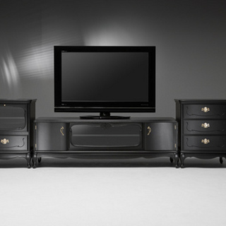 AV器機が収納できるフラップ扉タイプのサイドチェストです。同じカンティーニュシリーズのTVボードとお使いいただけます。