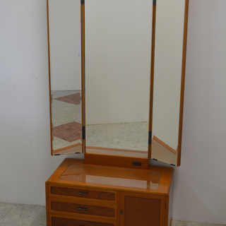 ガラス天板付き 広面鏡使用 引出し総桐ベタ底