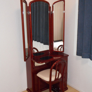 鏡台の 天板はバタフライタイプで、天板を下におろして姿見タイプに。 |