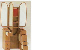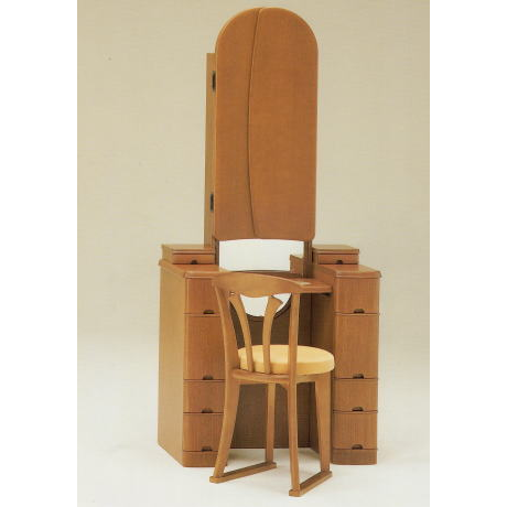 天板を下げると姿見になる収納三面鏡です。袖鏡も広く着物の着付け等にも便利です。収納部分も多く、鏡裏にも収納部分がございます。