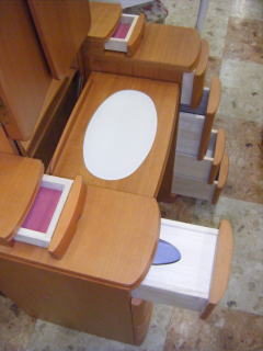 天板と台の収納部分 左袖の一番上の引出しはティッシュペーパー入れとなっています。 |