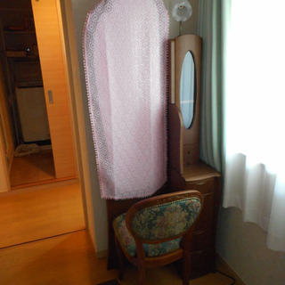 アンティークでゴージャスな雰囲気の収納型姿見です。豪華な椅子も素敵です。