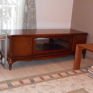 テレビボードを1500サイズの猫足アンティーク色にお買い換えです。今からテレビを設置されます。