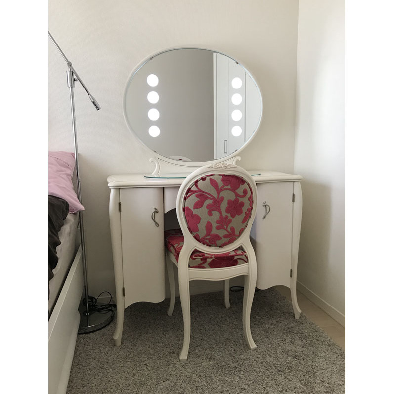 お客様にお届けしたLED照明付きドレッサーソフィー ホワイト色のご紹介です。