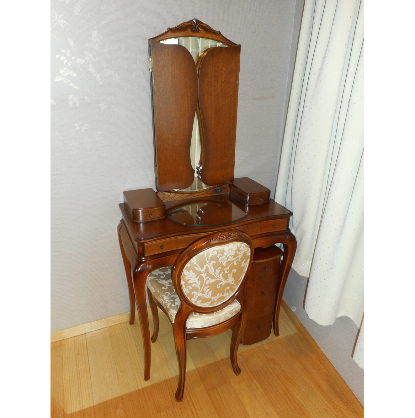 一生大事にしたい、又お化粧の時間が贅沢に感じる鏡台です。木のあたたかさとやさしさでお部屋をエレガントにする鏡台です。
