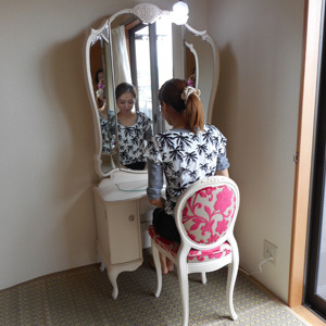 何とも可愛らしくキュートな姿が見え易い姿見三面鏡(アンティークドレッサー)です。