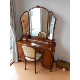 椅子もゴージャスで座り易くゆったりくつろげほっこりします。気分良くお化粧した後はきっと良い気分でお出かけになれます。お化粧する時間が楽しみになる高級猫脚ドレッサーです。