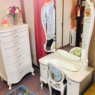 エレガントでクラシック クラシックでおしゃれ まるでお姫様になった気分を味わえる素敵なホワイトアンティークのドレッサーです。