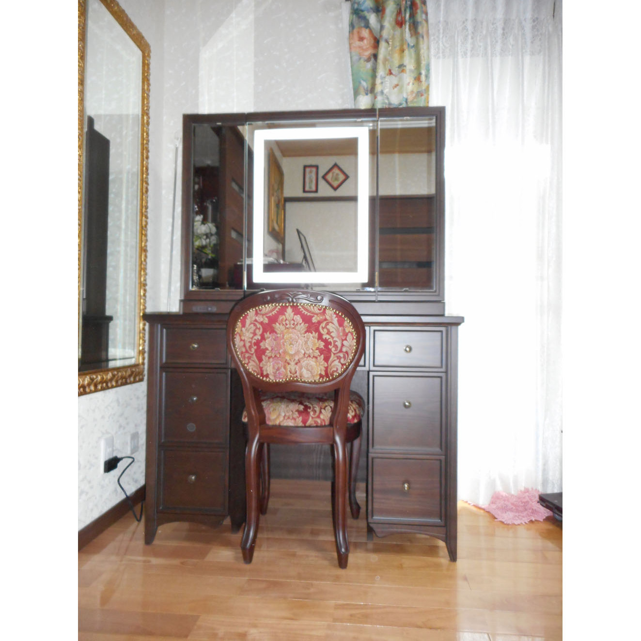 まるで美術館に居る様なLED照明付き三面鏡マリージョワの別注ウエンジ色のご紹介です。