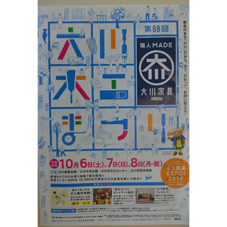 平成30年10月6日(土)・7日(日)・8日(祝)の3日間第69回大川木工まつりが大川産業会館をメインに開催されます。