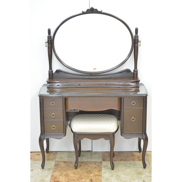 ゴージャスでゆったりした椅子もとても魅力的です。お化粧ヤメークの時間がきっと楽しくなる鏡台です。
